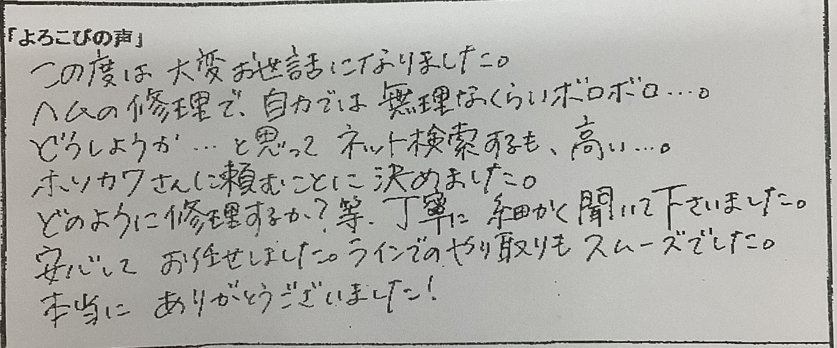 綺麗に直していただきいて、本当に感謝です。